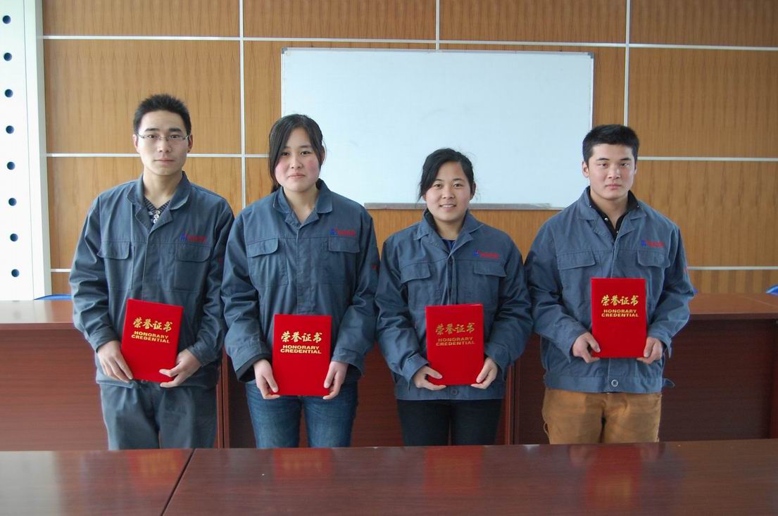近日,2010年度“泰安市岱岳區技術能手”名單公布,全區共有10名職工獲此殊榮,我公司李海泉、朱倩倩、溫玉敬、田志華(自左至右)四名員工名列其中。