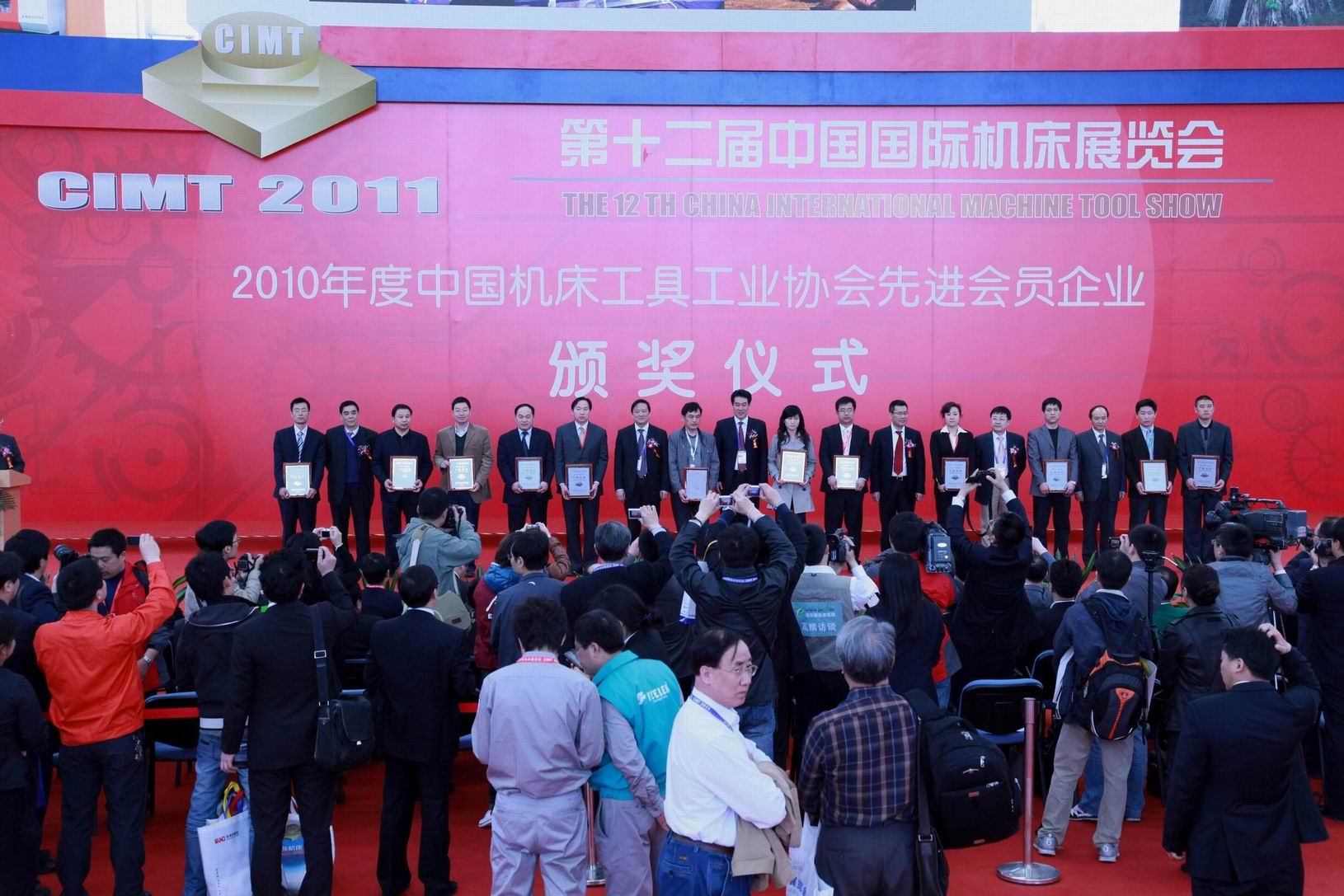 4月11日,2010年度中國機床工具工業協會先進會員企業頒獎儀式在北京第十二屆中國國際機床展覽會(CIMT2011)上舉行,受董事長、總經理康鳳明委托,常務副總經理潘憲平代表公司參加了頒獎儀式并上臺領獎。
